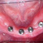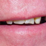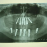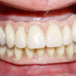 This businessman’s upper and lower natural teeth were broken and decayed and he did not want to wear removable dentures on a permanent basis. He had all his teeth extracted and on the same day upper and lower implants placed. After wearing temporary dentures for 6 weeks, he had upper and lower fixed bridges made which were like natural teeth. He never had to remove them and he felt confident again running his business.
